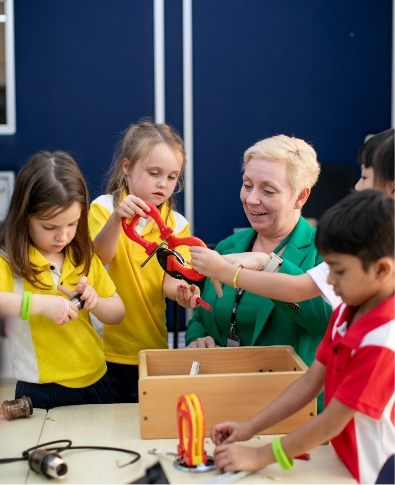 Our Primary Curriculum combines a topic-based, cross-curriculum approach with the British National Curriculum. It celebrates diversity, nurtures uniqueness, and empowers students to reach their full potential. We focus on cultivating lifelong learners with adaptable skills, keeping our curriculum "future-proof." Rooted in our motto, "We are GIS," our approach prioritizes students' well-being and emphasizes social-emotional and intercultural learning.